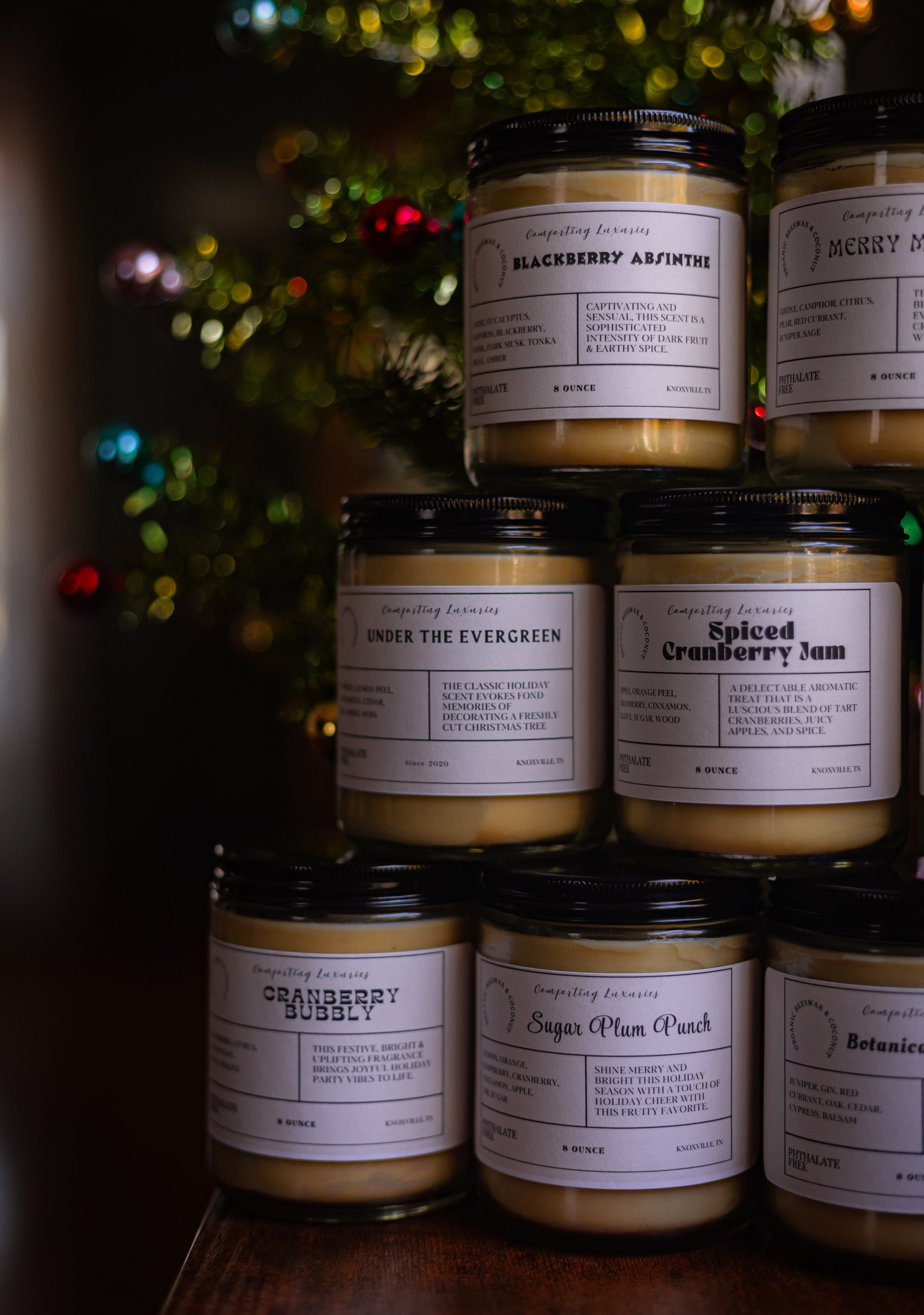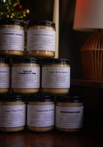 All jars are finished with a cotton wick, hand-applied label, and wrapped with love.